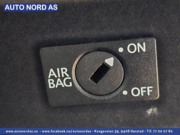 Kollisjonspute for fører og passasjer foran med deaktivering av koll.puten på passasjersiden