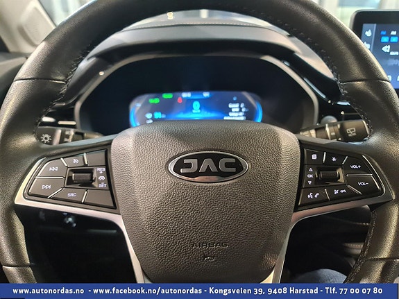 JAC e-JS4 er en romslig familie-SUV med effektiv og sprek motor på 193hk(141kW), 450 liters bagasjerom, 433 km rekkevidde WLTP og batteripakke på hele 65,7 kW. Bilen støtter både 1-fase og 3-fase lading.