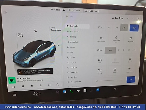 - 15" berøringsskjerm med Tesla sitt intuitive infotainmentsystem