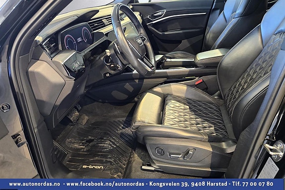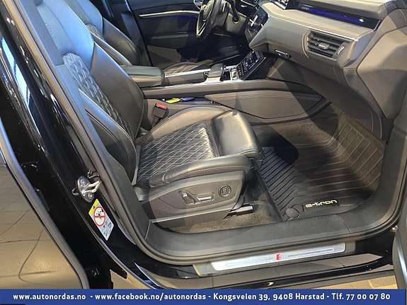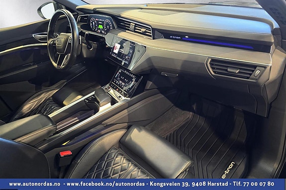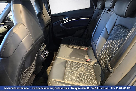 Audi e-tron 60 S Sportback er en sportslige coupé-SUV fra Audi med kraftig quattro-drivlinje, aggressivt design og høy komfort. Den har tre elmotorer med totalt 370 kW (503 hk) og imponerende akselerasjon, kombinert med adaptiv luftfjæring for god kjørekomfort og dynamikk. Daytona Gray Pearl-effect lakk, S-emblemer og sporty detaljer gir et eksklusivt og kraftfullt utseende. En premium elbil med masse utstyr, stillegående kjøring og lav driftskostnad.