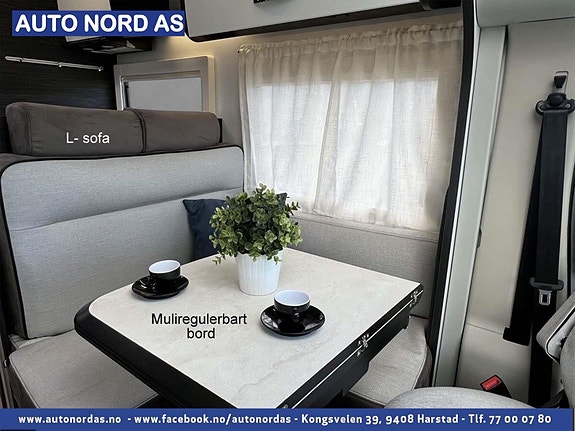 Solcellepanel Aircondition bildel 9 trinns automatgir 180hk, 16 alu-felger, Ryggekamera Komplett trefri konstruksjon Dab+ radioanlegg Største varmeanlegg Optimalt plassert varmesystem Markise og utelys.
