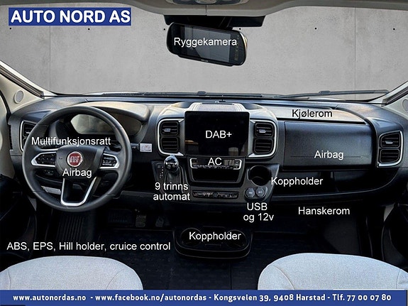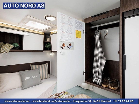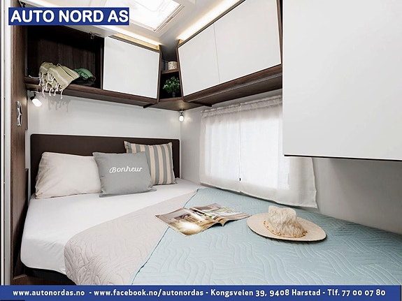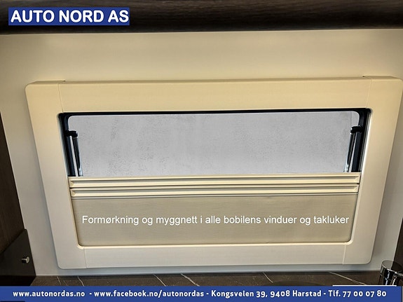 Bobilen har 140 HK og 9 trinn automatisk girkasse. TREFRI KONSTRUKSJON (Råtner med andre ord ikke) I tillegg 100% forsterket polyester overgang bildel. PANORMA takluke (med myggnett og formørkning) som gir et fantastisk flott lys og romfølelse. Bodelsdøren har to låser, vindu med formørking og myggnett som dekker hele døråpningen.