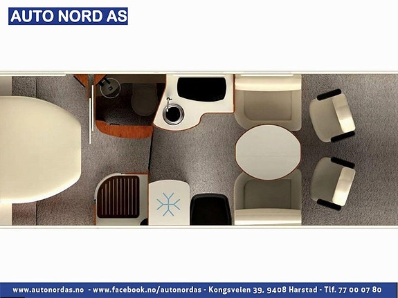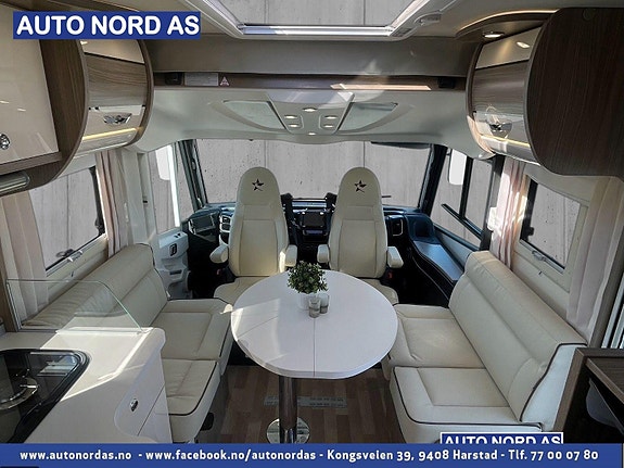 Autostar Passion i 730 LCA har midtstilt dobbelseng bak, svært romslig salong med face to face sittegruppe fremme, senkeseng over førerhytten og dobbelgulv under hele bilen. Bobilen har sandwich-konstruksjon og er svært godt tilpasset bruk hele året. Her ferierer man på første klasse!